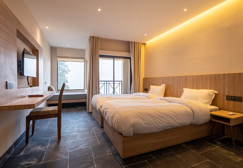 - Double Deluxe Room: Spacious and perfect for couples or two guests, complete with a private balcony and mountain views.